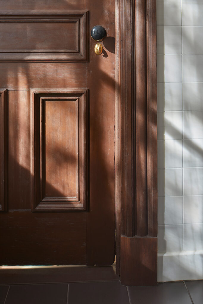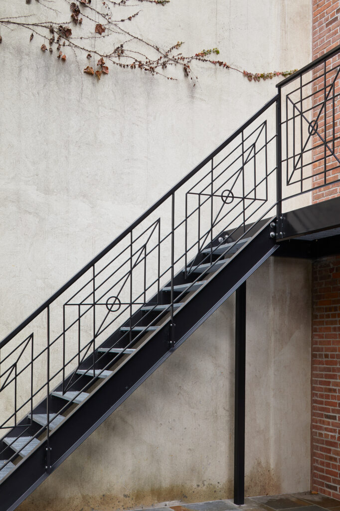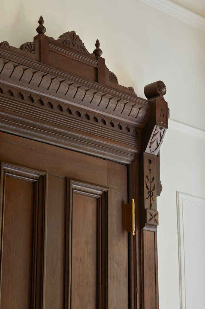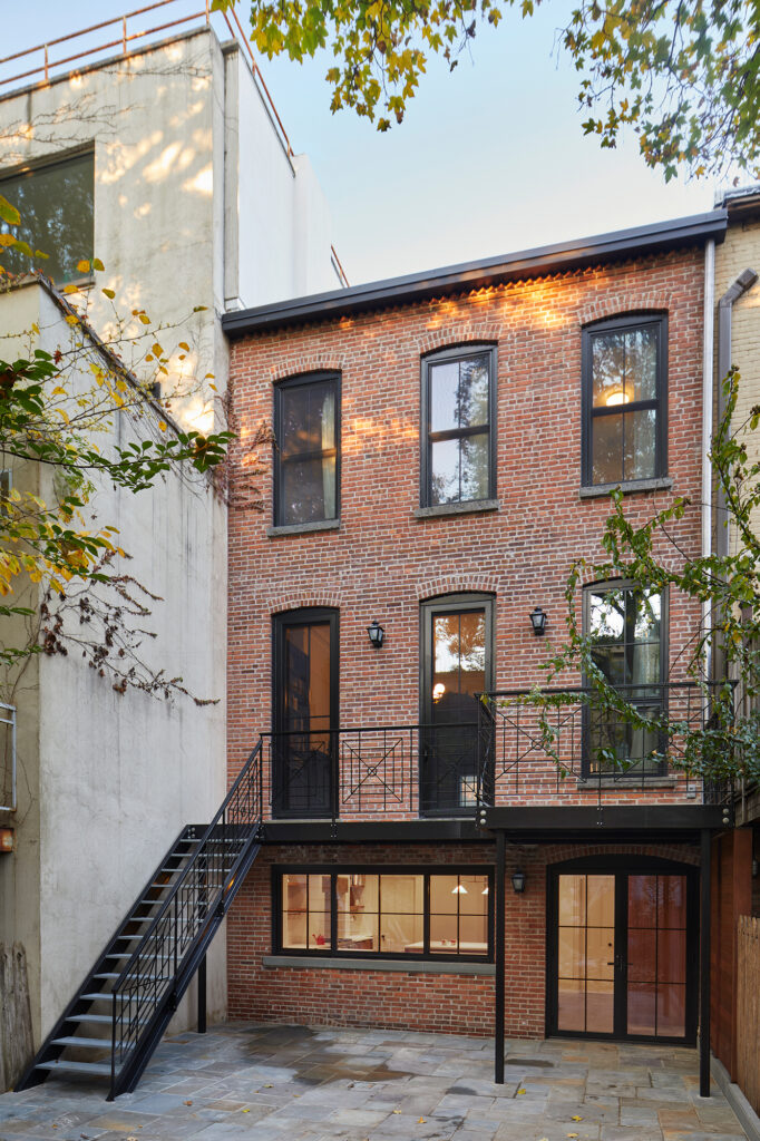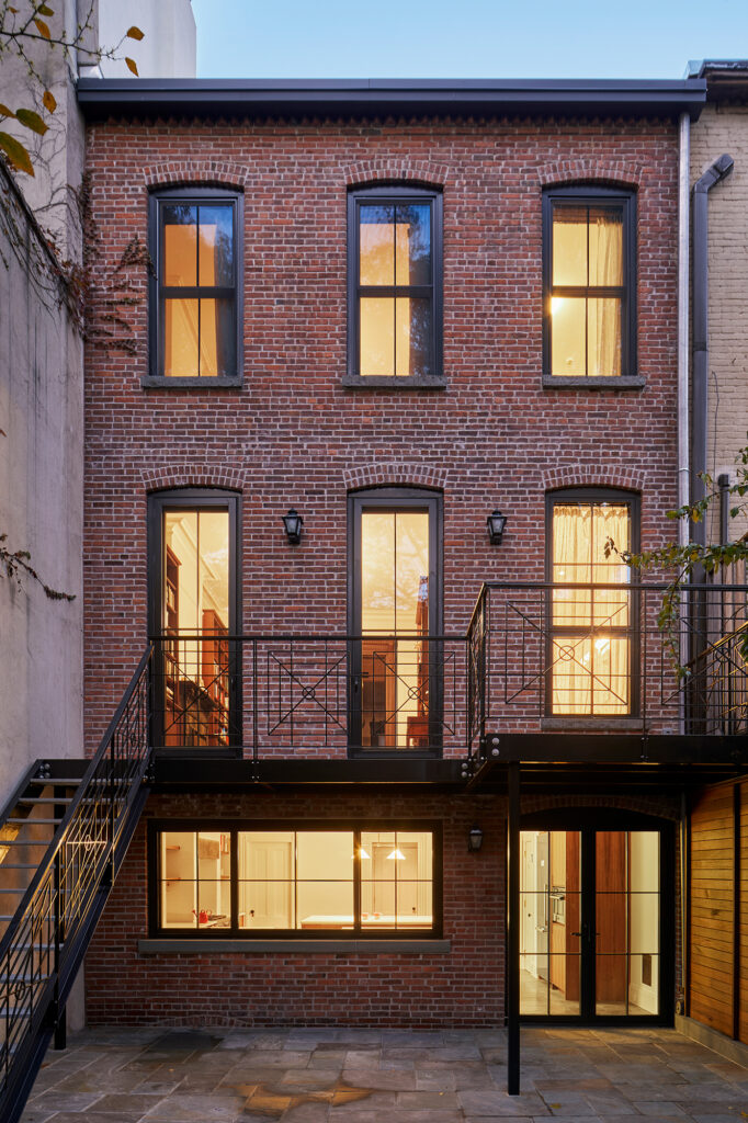 The rear facade masonry restoration, new wood windows/doors and deck improves the relationship with the rear yard. The interior’s ornate details, dark wood trim, light pine floors and plaster walls have been preserved, while new services have been installed without interrupting the spaces.